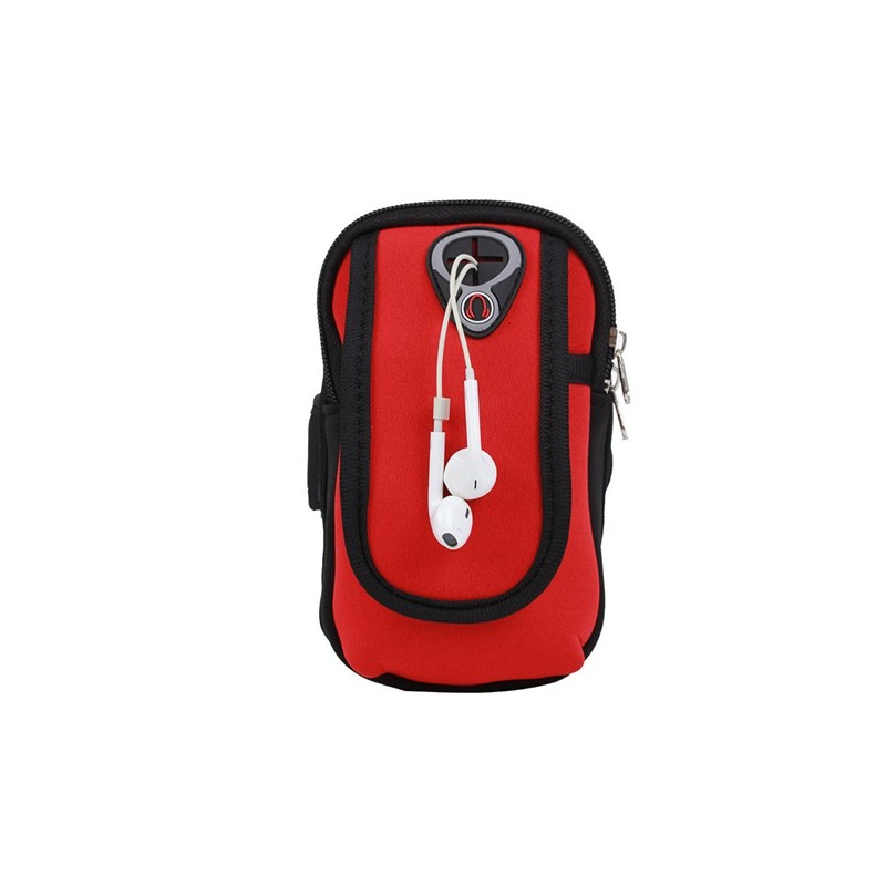 Armband Bags for Phone Money Keys Outdoor Sports Arm Package Bag with Headset Hole Running Arm Band - Red, 6.5"