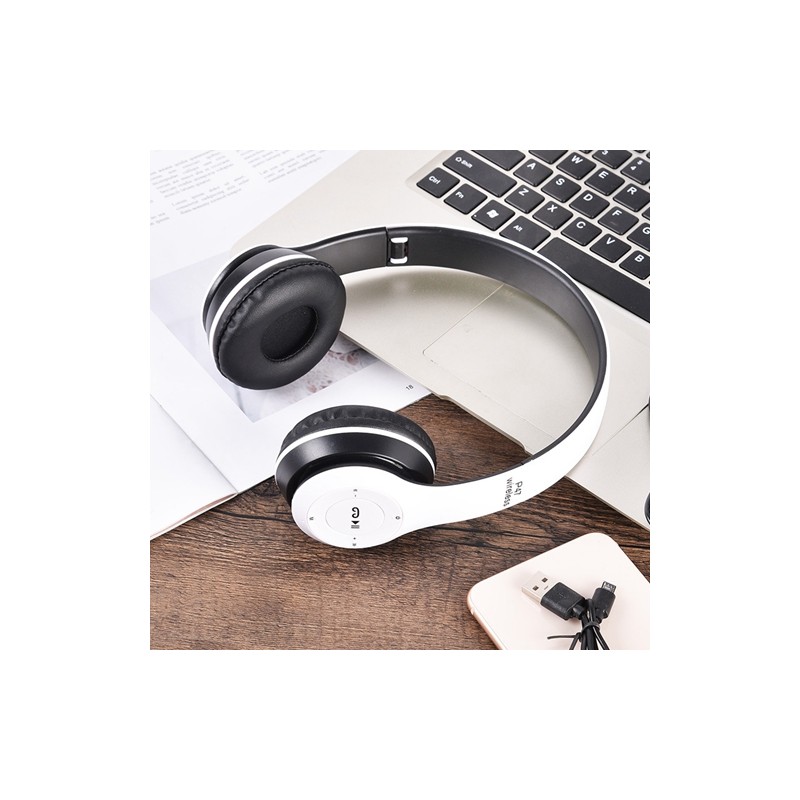 P47 Wireless Headphone Bluetooth 5.0 Headsets Foldable Bass Helmet Support TF-Card with Mic for PS4 / Phone / PC - White