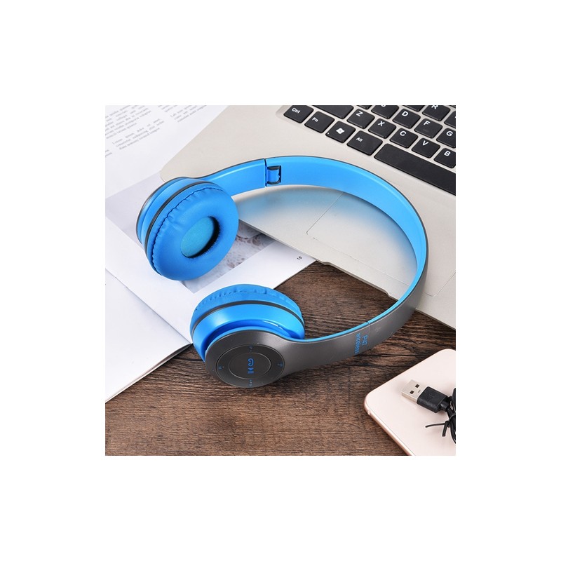 New P47 Wireless Headphone Bluetooth 5.0 Headsets Foldable Bass Helmet Support TF-Card with Mic for PS4 / Phone / PC - Blue View larger